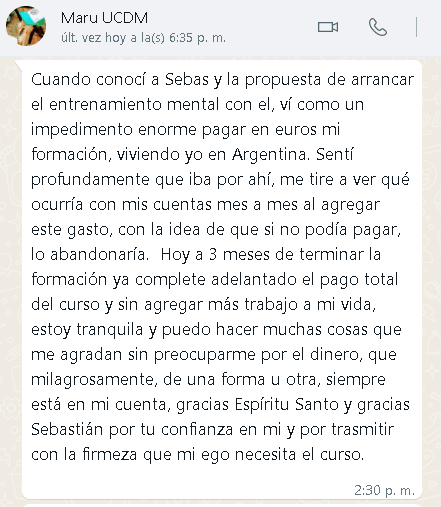 He logrado tener mayor confianza porque me liberó de esa responsabilidad que había asumido como que yo necesitaba controlarlo todo, para mí el concepto de control era lo que me daba seguridad entonces pensaba que si no lo.controlaba todo estaba perdido.